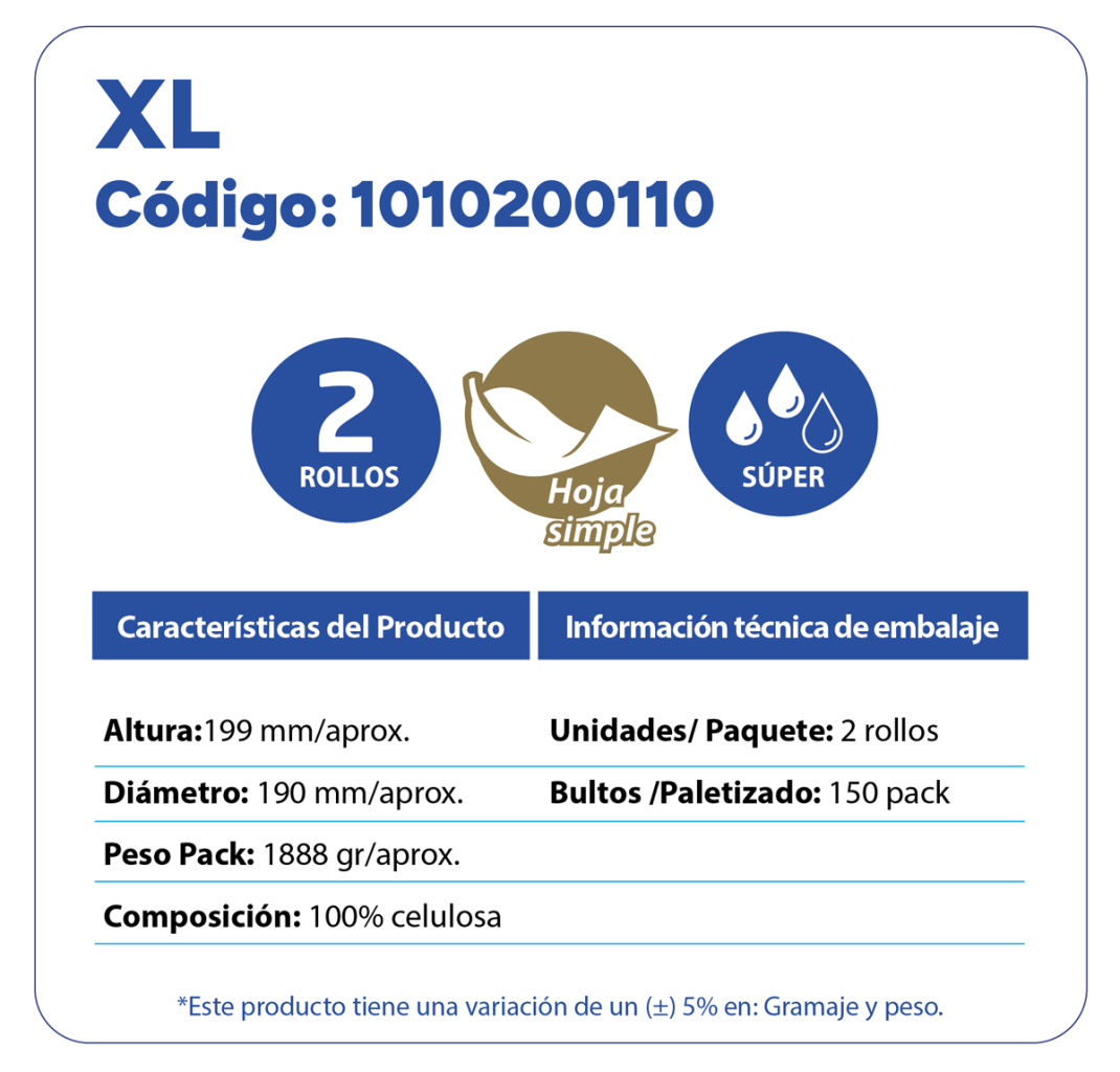 TOALLA INSTITUCIONAL HOJA SIMPLE WINROLL EXPERT 2 ROLLOS 190 METROS CÓDIGO:1010200105Súper AbsorbenteResistentes100% CelulosaPerfectas para su industria TOALLA INSTITUCIONAL HOJA SIMPLE WINROLL EXPERT 2 ROLLOS 250 METROS CÓDIGO:1010200100Súper AbsorbenteResistentes100% CelulosaPerfectas para su industria TOALLA INSTITUCIONAL HOJA SIMPLE WINROLL EXPERT 2 ROLLOS 200 METROS CÓDIGO:1010200120Súper AbsorbenteUltra Resistentes100% CelulosaPara grandes desafíos TOALLA INSTITUCIONAL XL 2 ROLLOS 220 METROS CÓDIGO:1010200110Súper AbsorbenteResistentes100% CelulosaPerfectas para su industria TOALLA INSTITUCIONAL MINI HS CÓDIGO:1010200115Súper AbsorbenteResistentes100% Celulosa TOALLA INTERFOLIADA DOBLE HOJA WINROLL 200 UNIDADES CÓDIGO:10601000’100Súper AbsorbenteResistentes100% CelulosaPerfectas para su industria